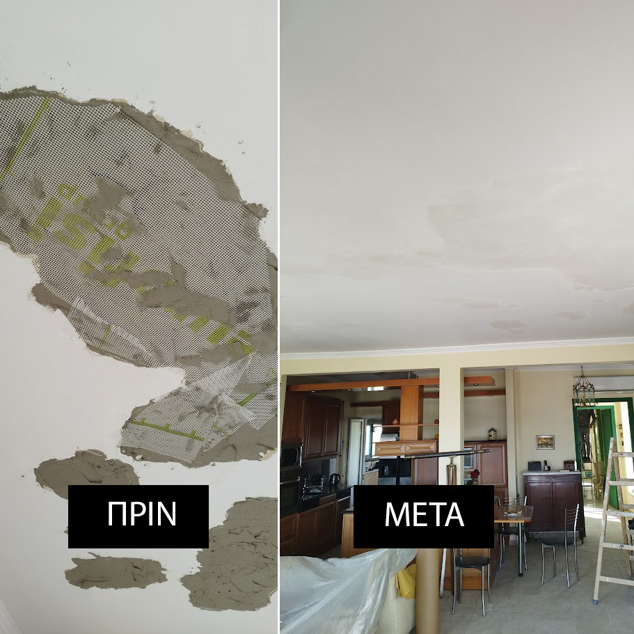 Επισκευάζουμε τοίχους, οροφές που έχουν διαβρωθεί από υγρασία, σάς τοποθετούμε γυψοκατασκεύες με ηλεκτρολογική εγκατάσταση, στοκαρίσματα, βαψίματα.